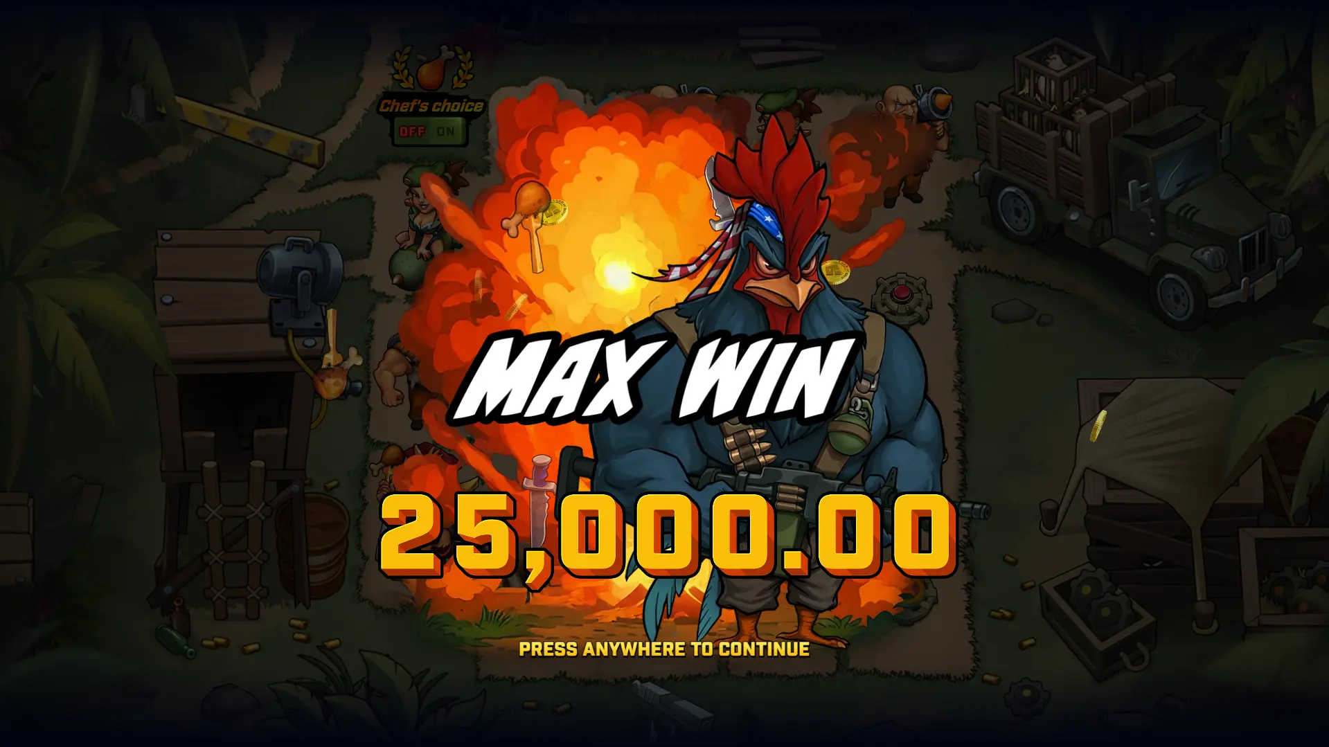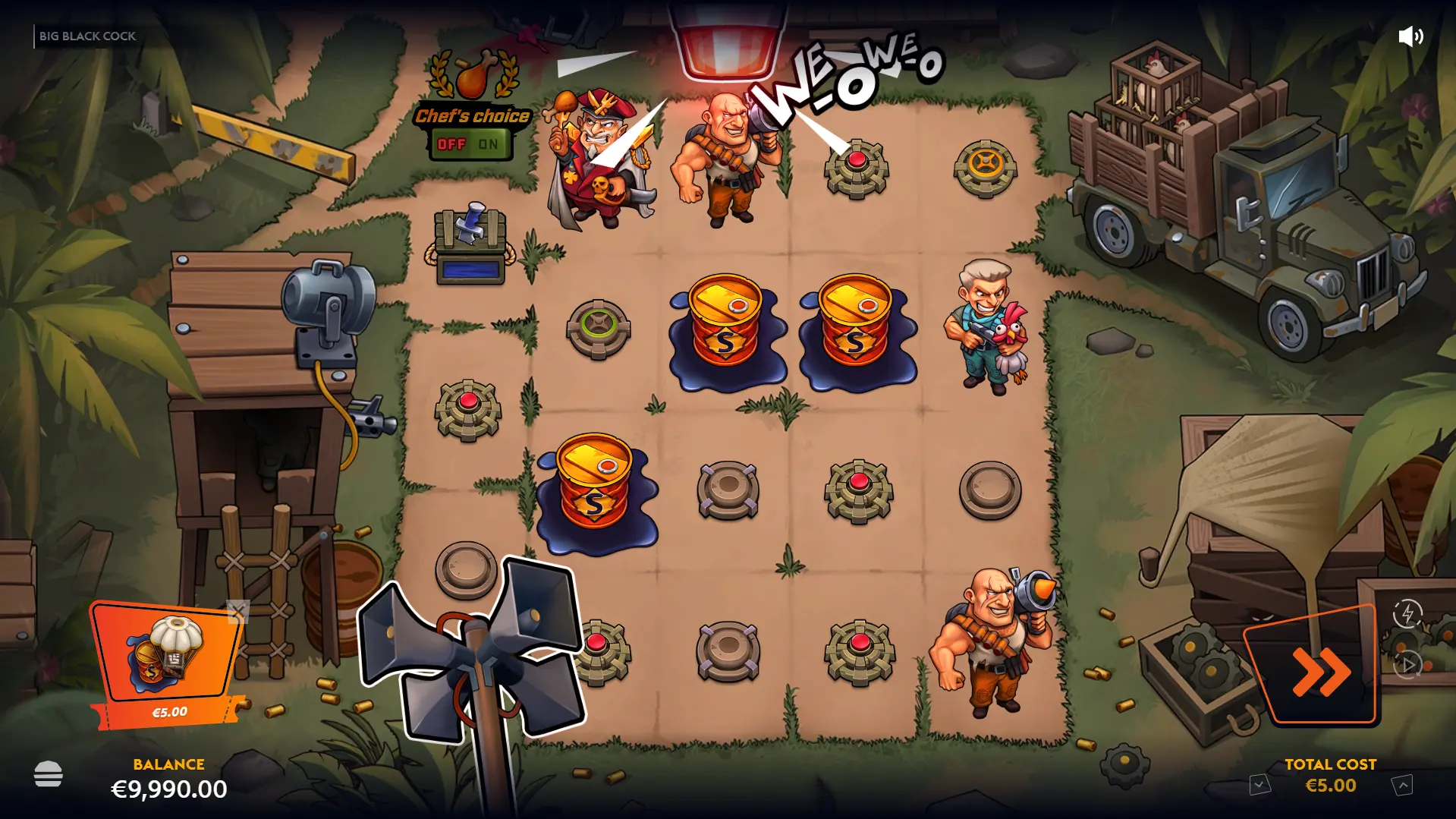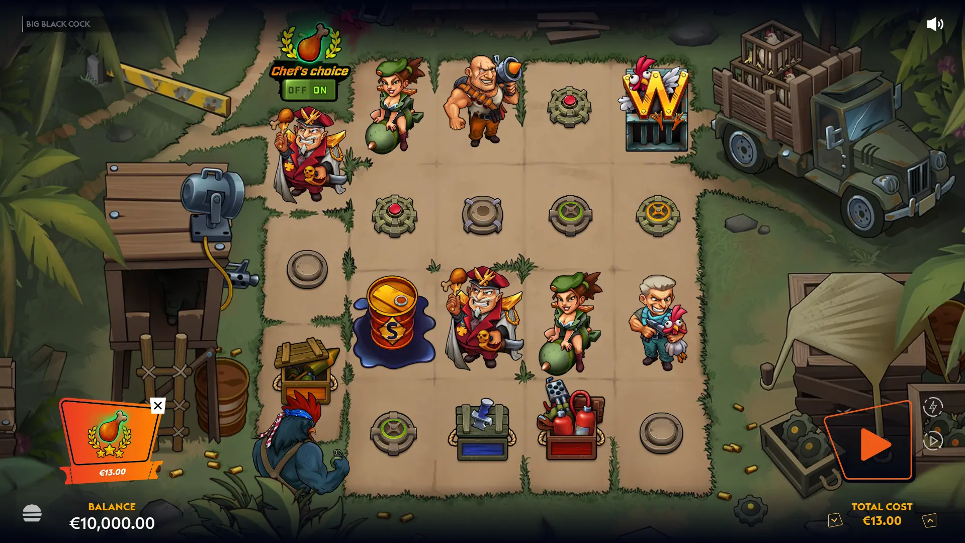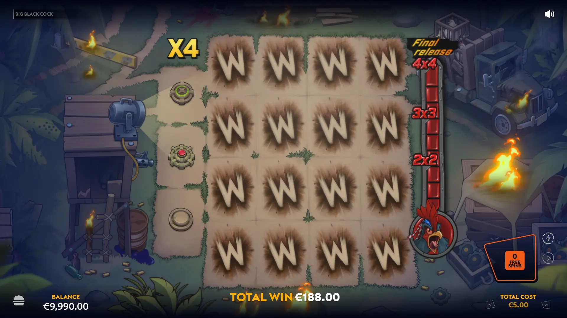 Big Black Cock is not here for subtlety, nuance, or quiet reflection. It's here to make eye contact, say the joke out loud, and then repeat it just in case you missed it the first time. Wicked Games didn't accidentally stumble into double entendres — they built the entire game around them and then layered on cutscenes, animations, and feature names that make sure you're never more than a few seconds away from another groan-worthy punchline. And yet… it works. Or at least, it works if you're willing to meet it on its level. The humour is knowingly juvenile. It's less "clever satire" and more "last row of the classroom energy," but the game leans so fully into its absurd premise, a vengeance-driven rooster unloading military-grade payback, that it becomes hard not to appreciate the commitment. This isn't a slot trying to disguise itself as something respectable. It's a parody dressed in combat boots. Strip away the barrage of wordplay and there's a legitimately busy, feature-driven slot underneath. Wilds are the engine of the experience, arriving through Frontal Assault, Cocktease triggers, and other deployment mechanics that keep the reels active. Free spins are where the structure tightens up: the persistent win multiplier and Rage Meter give the bonus round a sense of escalation, building toward the 4x4 wild Final Release. When it lines up, it guarantees wins, and with a 25,000x max win on paper, the upside is far from cosmetic. Big hits won't necessarily come easy, and the volatility means you may need patience before the fireworks begin. But mechanically, there's enough going on to ensure the game isn't surviving on innuendo alone. Big Black Cock is loud, crude, and proudly immature but it's also animated well, feature-heavy, and fully aware of the joke it's telling. It won't be everyone's cup of tea. For some, it'll be exhausting. For others, it'll be the kind of slot that makes you smirk while pretending you're not smirking. Either way, it never pretends to be anything other than what it is and in a market full of safe, beige releases, that alone makes it stand out.